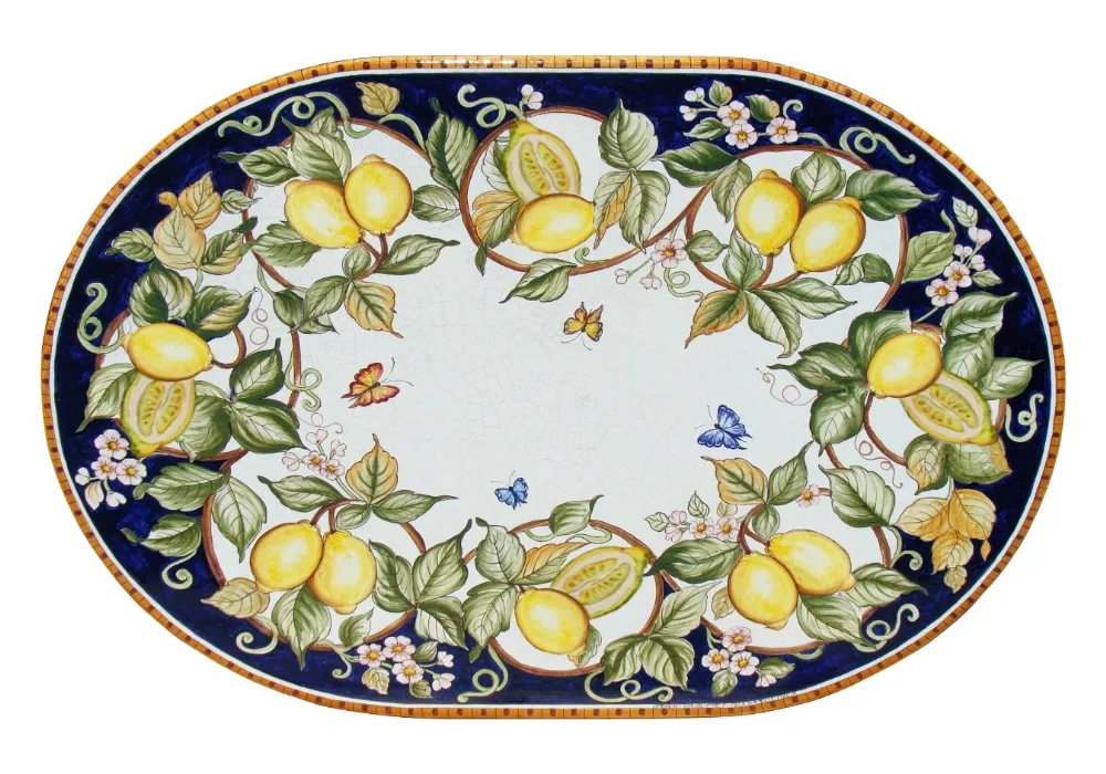 Každý stôl je vyrobený z prvotriedneho lávového kameňa s keramickou glazúrou a ručne dekorovaný v umeleckom ateliéri v srdci slnečnej Umbrie čo z neho robí skutočné umelecké dielo.