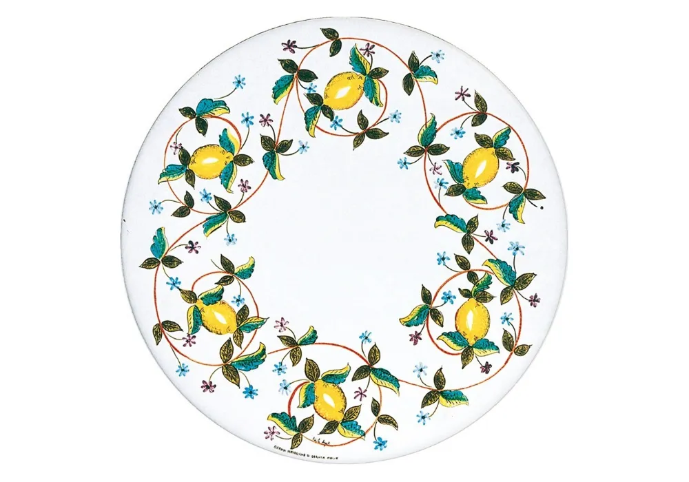 Lávový stôl Gafa 116 z kolekcie Nature Line predstavuje spojenie umeleckej keramiky a tradičného talianskeho remesla. Dizajn vychádza z bohatej Umbrianskej keramickej tradície, ktorá počas renesancie preslávila majstrov ako Raphael, Pinturicchio či Perugino. Svieži citrónový dekor pôsobí ľahko, radostne a dekoratívne, s jemným nádychom hravosti a stredomorskej elegancie. Po obvode dosky sa vinie pravidelný veniec zo žiarivo žltých citrónov, sýtozelených listov a tenkých konárikov, ktoré sú doplnené drobnými modrými a fialovými kvietkami.