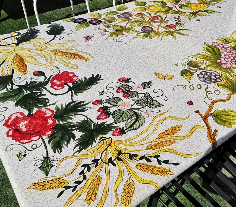 Každý stôl je vyrobený z prvotriedneho lávového kameňa s keramickou glazúrou a ručne dekorovaný v umeleckom ateliéri v srdci slnečnej Umbrie čo z neho robí skutočné umelecké dielo.