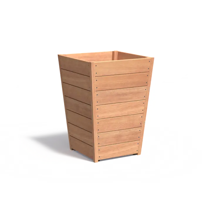 Kvetináč TAP je vyrobený z tropického tvrdého dreva, ktoré dodáva záhradám teplý a robustný vzhľad. Všetko naše tvrdé drevo je zaradené do triedy odolnosti 2 a vydrží až 25 rokov. Použitie tvrdého dreva vytvára kvetináč, ktorý krásne ladí so sviežou zeleňou záhradného prostredia.