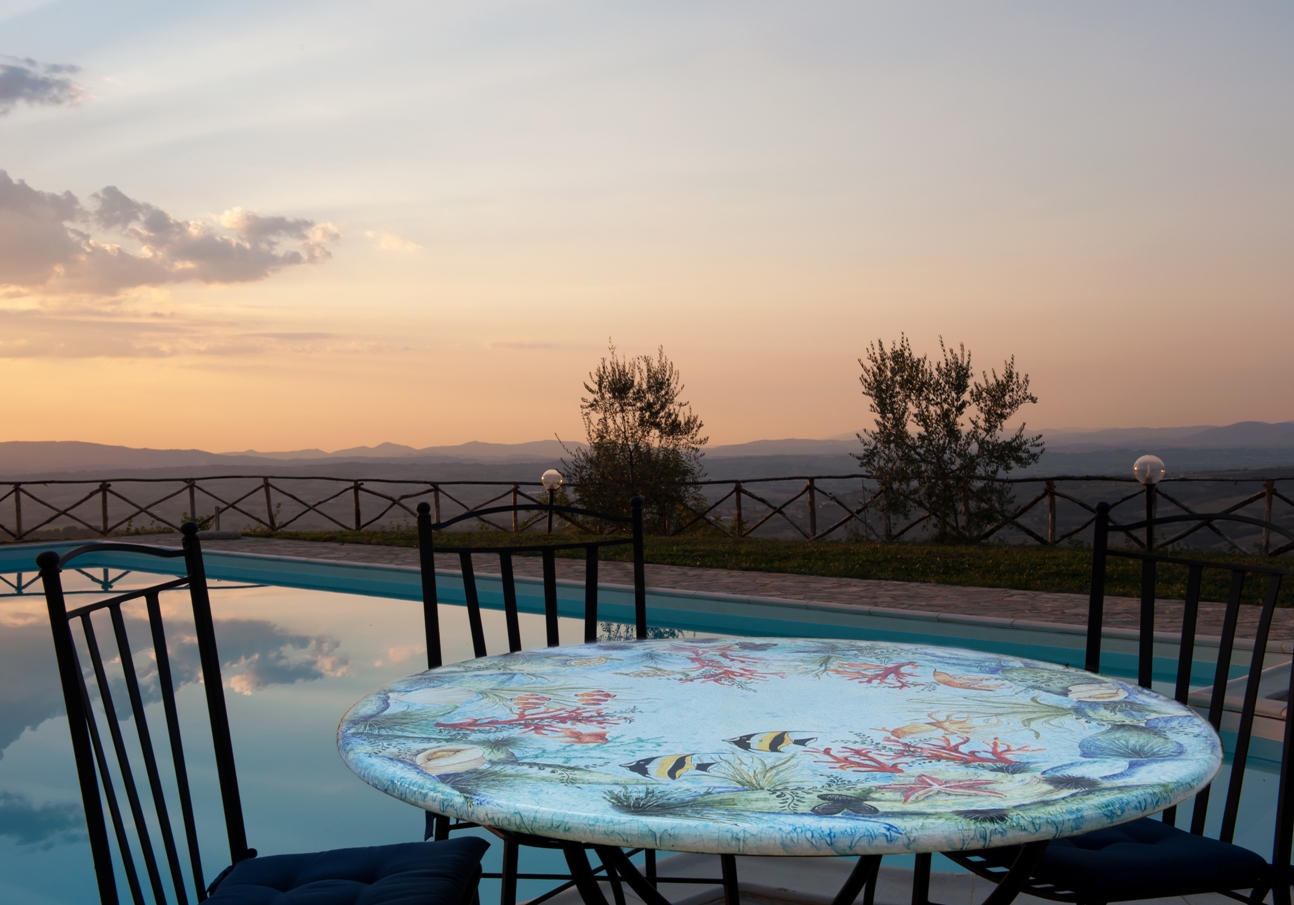 Každý stôl je vyrobený z prvotriedneho lávového kameňa s keramickou glazúrou a ručne dekorovaný v umeleckom ateliéri v srdci slnečnej Umbrie čo z neho robí skutočné umelecké dielo.