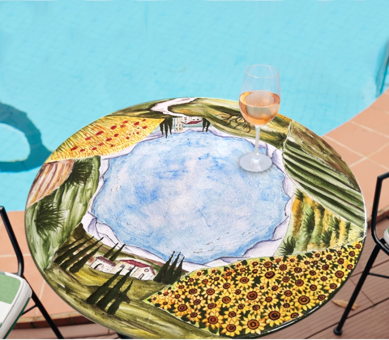 Každý stôl je vyrobený z prvotriedneho lávového kameňa s keramickou glazúrou a ručne dekorovaný v umeleckom ateliéri v srdci slnečnej Umbrie čo z neho robí skutočné umelecké dielo.