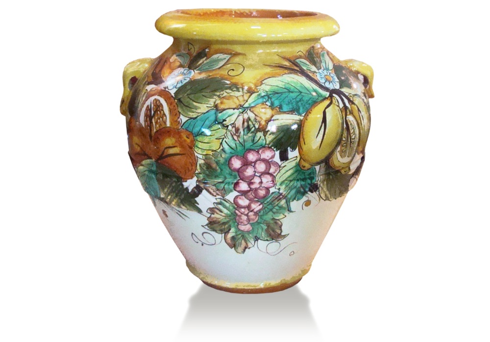 Klasická amfora Frutta Rosy Fascia Gialla patrí medzi najikonickejšie formy talianskej keramiky, ktorá sa po stáročia využívala na uskladnenie oleja a vína. V modernom prevedení s motívom ovocia získava nový, sofistikovaný výraz, ktorý prirodzene zapadne do súčasnej architektúry aj minimalistických záhrad. Táto nádoba nie je len kvetináčom, ale dizajnovým prvkom, ktorý definuje priestor.