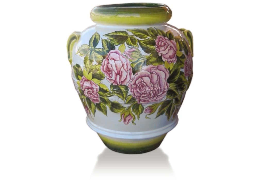 Klasická amfora Rose patrí medzi najikonickejšie formy talianskej keramiky, ktorá sa po stáročia využívala na uskladnenie oleja a vína. V modernom prevedení s motívom ruží získava nový, sofistikovaný výraz, ktorý prirodzene zapadne do súčasnej architektúry aj minimalistických záhrad. Táto nádoba nie je len kvetináčom, ale dizajnovým prvkom, ktorý definuje priestor.