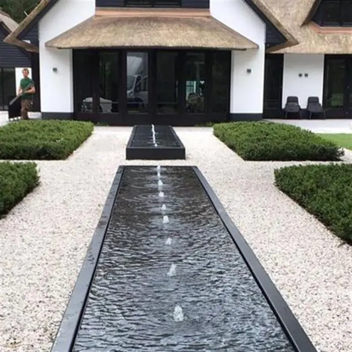 Naše vodné stoly sú výrazné a štýlové záhradné ozdoby. Ich hranaté línie dodávajú záhradným priestorom štýl a dynamiku. Hliníkový vodný stôl bude krásne vyzerať medzi sviežou zeleňou každej záhrady. Všetky naše vodné stoly štandardne obsahujú čerpadlo a fontány s LED osvetlením. Takže tento vodný prvok si môžete užívať aj v noci!