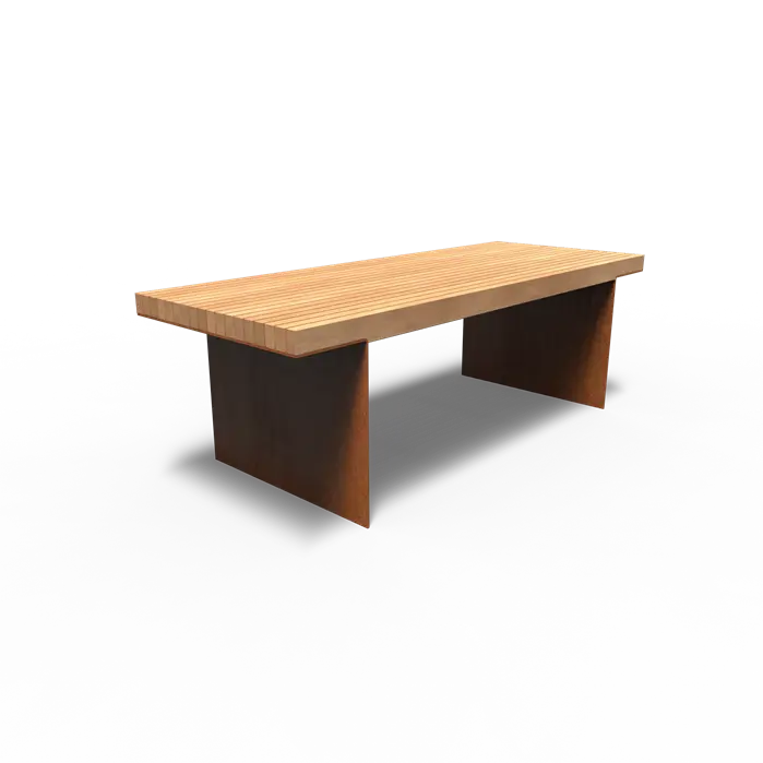 Vonkajší stôl BORG predstavuje moderný a nadčasový prvok mestského mobiliáru, ktorý spája funkčnosť, odolnosť a estetiku. Tento robustný stôl je vyrobený z kvalitnej corténovej ocele, ktorá zabezpečuje dlhú životnosť a odolnosť voči poveternostným vplyvom.